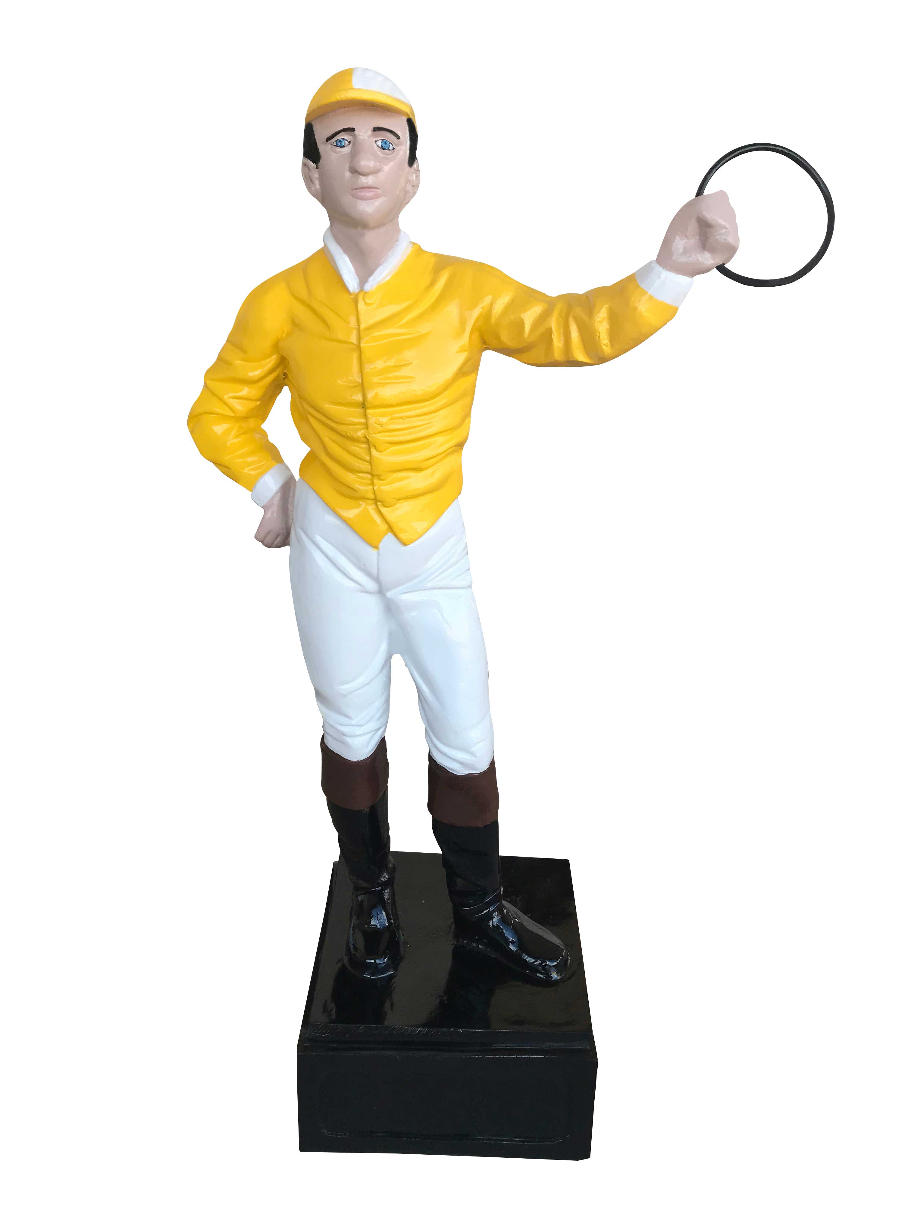 “This custom painted English Jockey is made and built from the finest quality of cast aluminum. It goes through a curing process after it comes out of the mold which makes the statue retain a high degree of durability and last a lifetime. The statues are lightweight and can be move with ease. The statues are durable and can be used indoors or outdoors.
